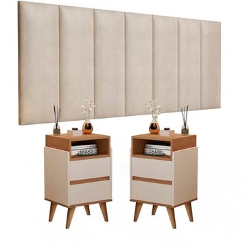 Conjunto Cabeceira cama de casal com kit 2 criados